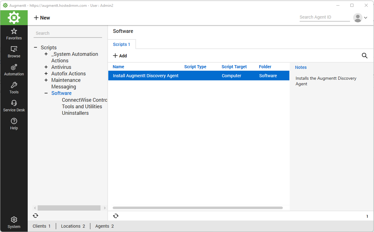 From the Automate Control Center, select Automation >Scripts and +Add a new script.