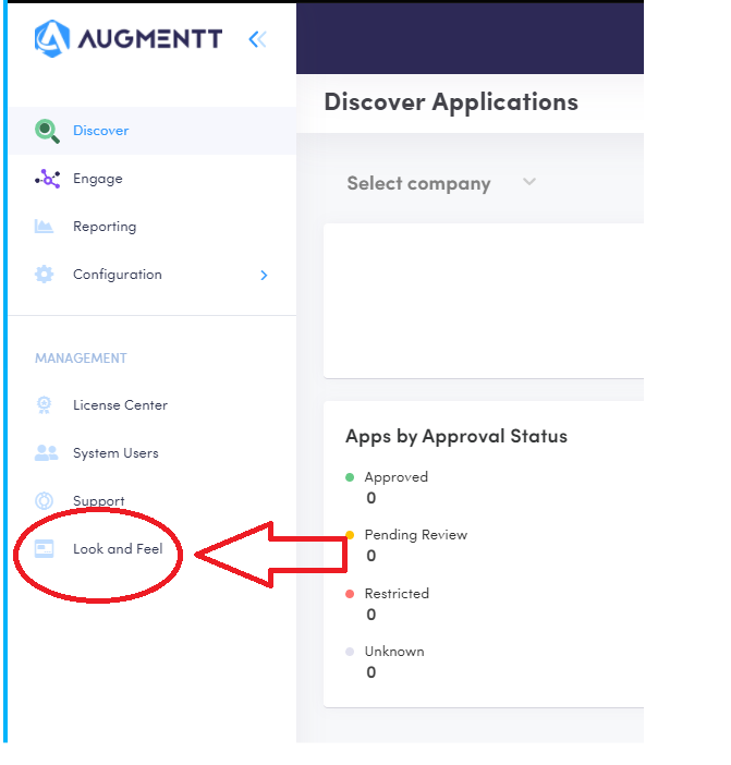 The settings for both of these customizations can be found within the Augmentt Portal by clicking on ‘Look and Feel’ at the bottom of the left-hand navigation: