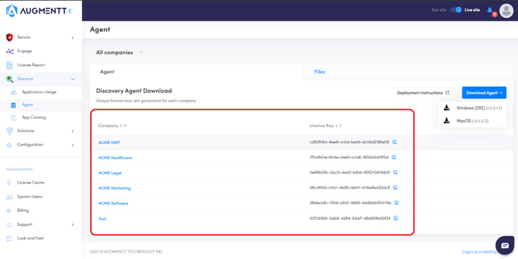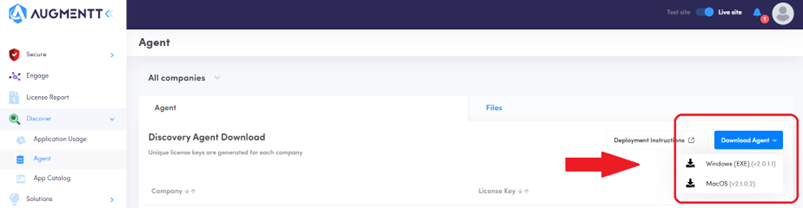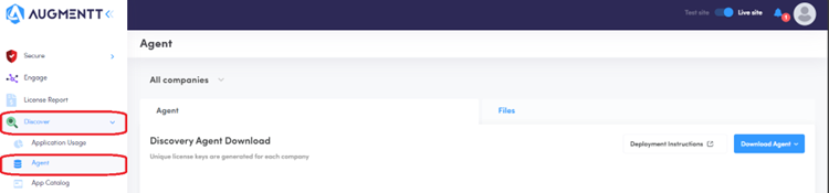 2. Navigate in the Augmentt dashboard to Discover>Agent