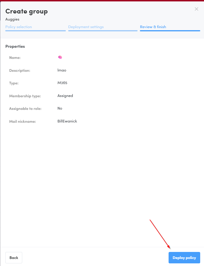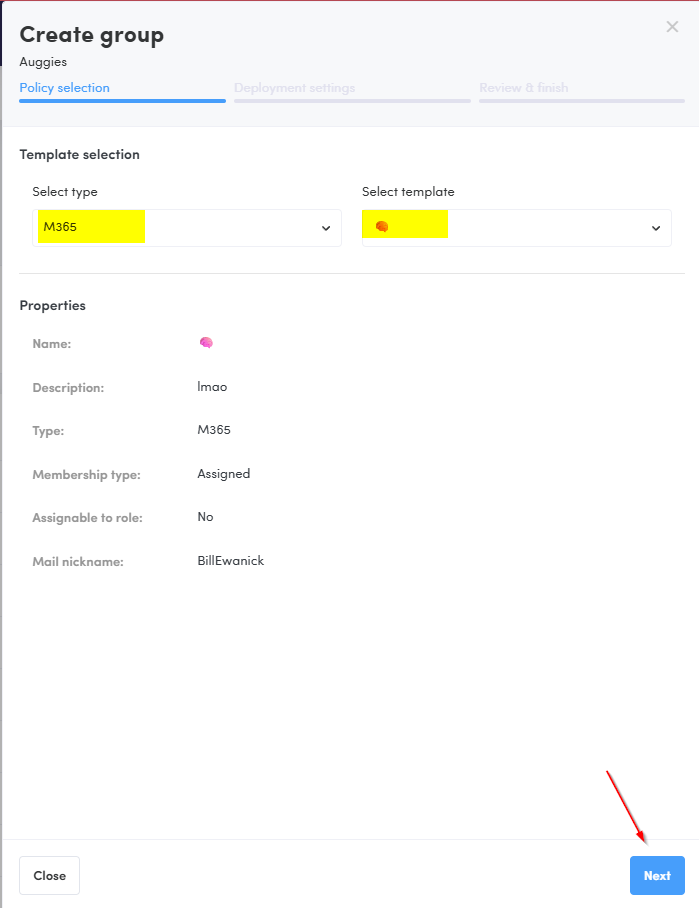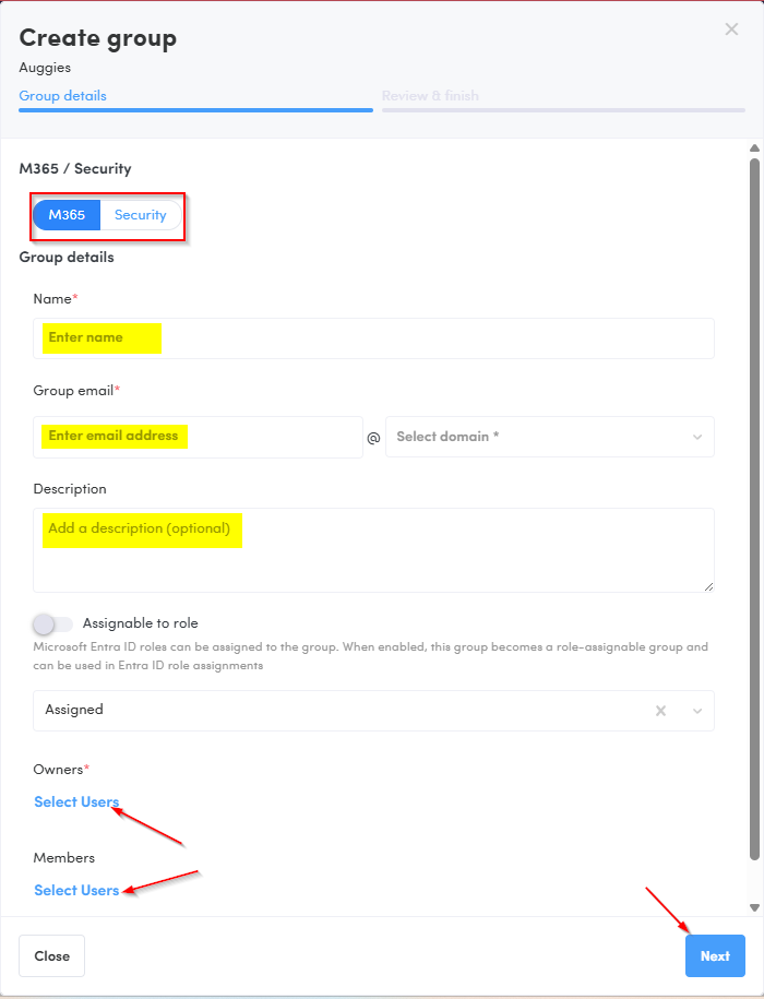 Select the type (M365 / Security) and enter your group details.