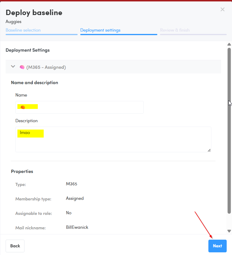 Select the Baseline to deploy, click Next