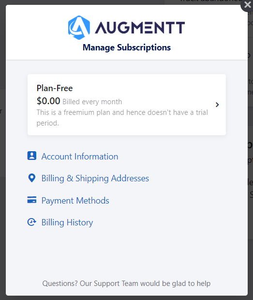 1. Log in to your Augmentt account and navigate to the Billing tab