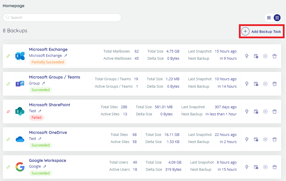 Backup Task Page
